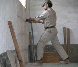 Empezamos a cortar la pared con el serrucho