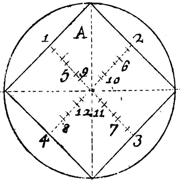 dividimos las distancias 1-3 y 2-4 en 6 partes iguales