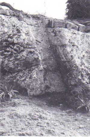 posición que tenía en el lecho de cantera.