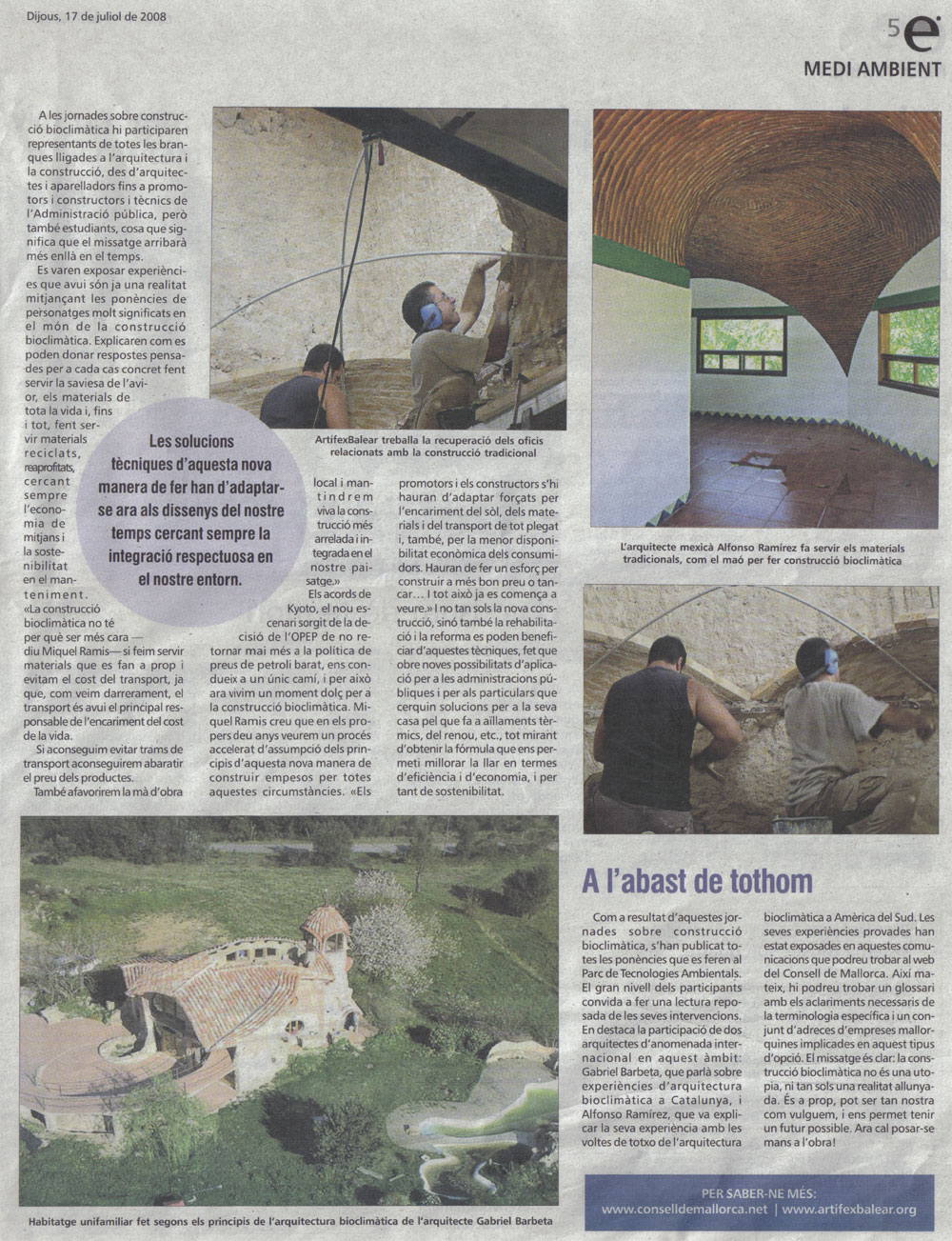 After years of rigorous work at our headquarters in Palma de Mallorca, we now offer an innovative long term learning project with an international perspective. This project combines long distance learning and in situ classes, sustainable and traditional building, permaculture, appropriate technology as well as arts, crafts and culture.
