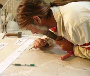 Los bancos de talla, mesa de traza, pizarra, estanterías