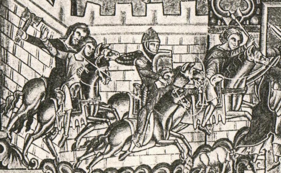 1200. Dos de los caballeros portan hachas dobles